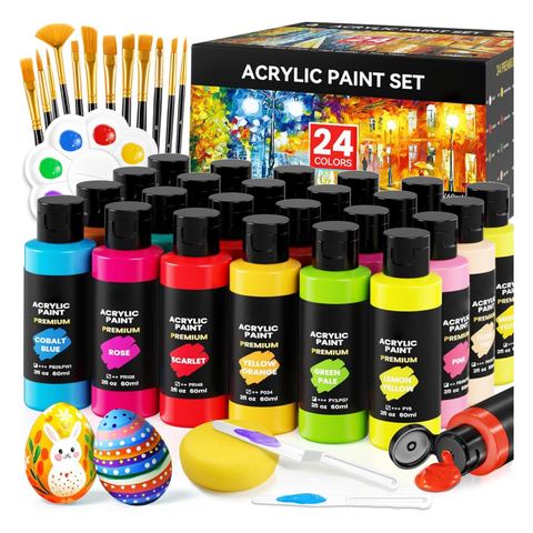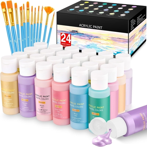 ชุดสีอะครีลิค24สีพร้อมแปรงทาสีอะคริลิคสำหรับผู้เริ่มต้นศิลปะบ้านและโปรเจกต์ DIY ขนาดเล็ก