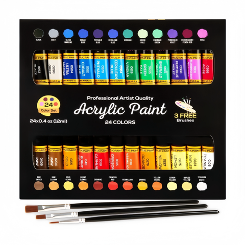 ชุดสีอะคริลิค24สีหลอดอะคริลิค12มล. พร้อมแปรง3สีสำหรับงานฝีมือ